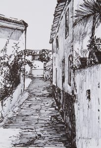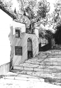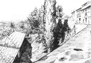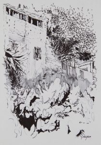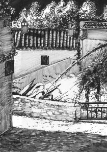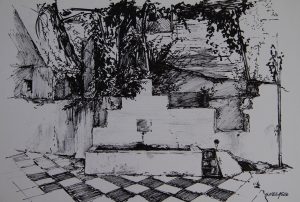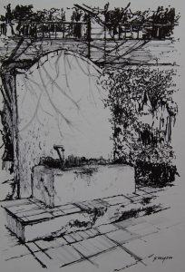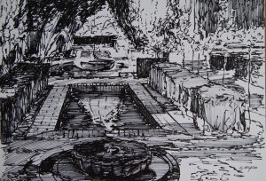Líneas trazadas de sombras y luces que construye la diversidad de un lugar, espacio abierto, rincón íntimo, sendero zigzagueante, recodos imprevistos, senderos floridos, un hilo de agua que fluye a ras del suelo y se matiza con toda la gama de la espesura, y se vierte en el mármol de un surtidor.